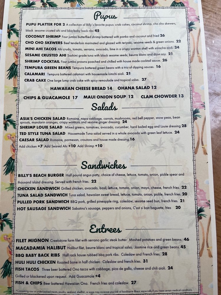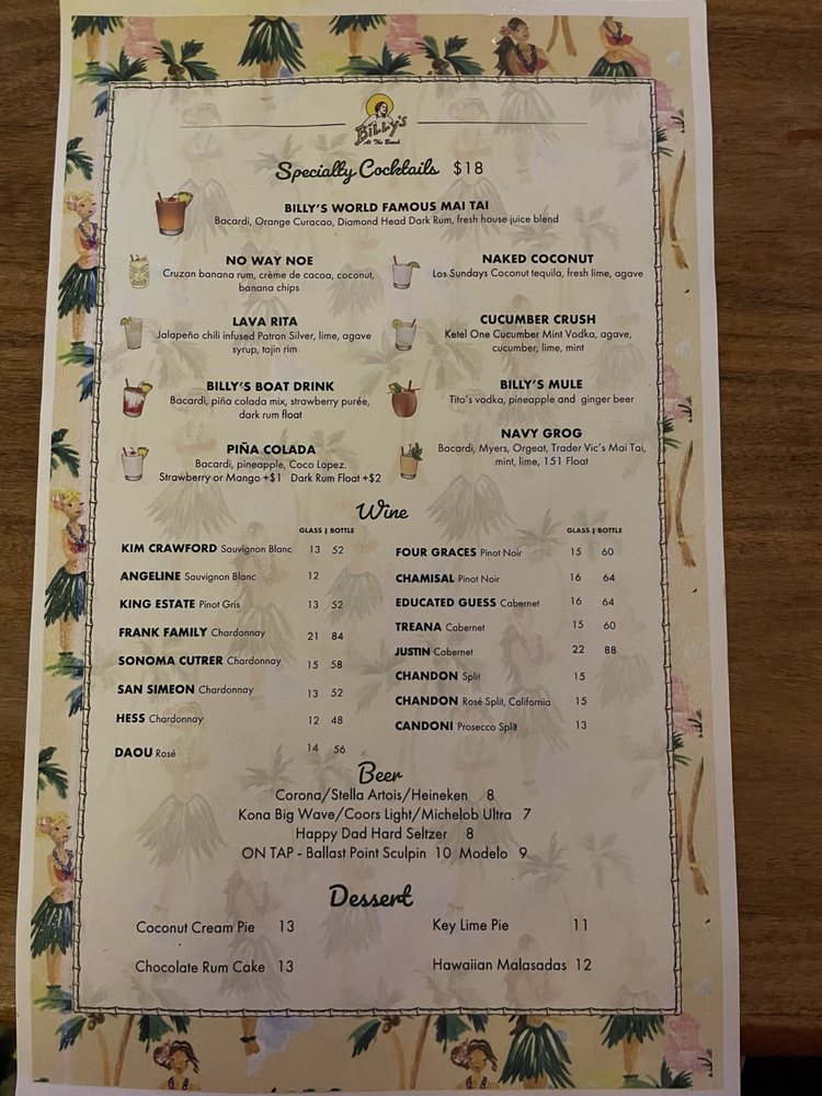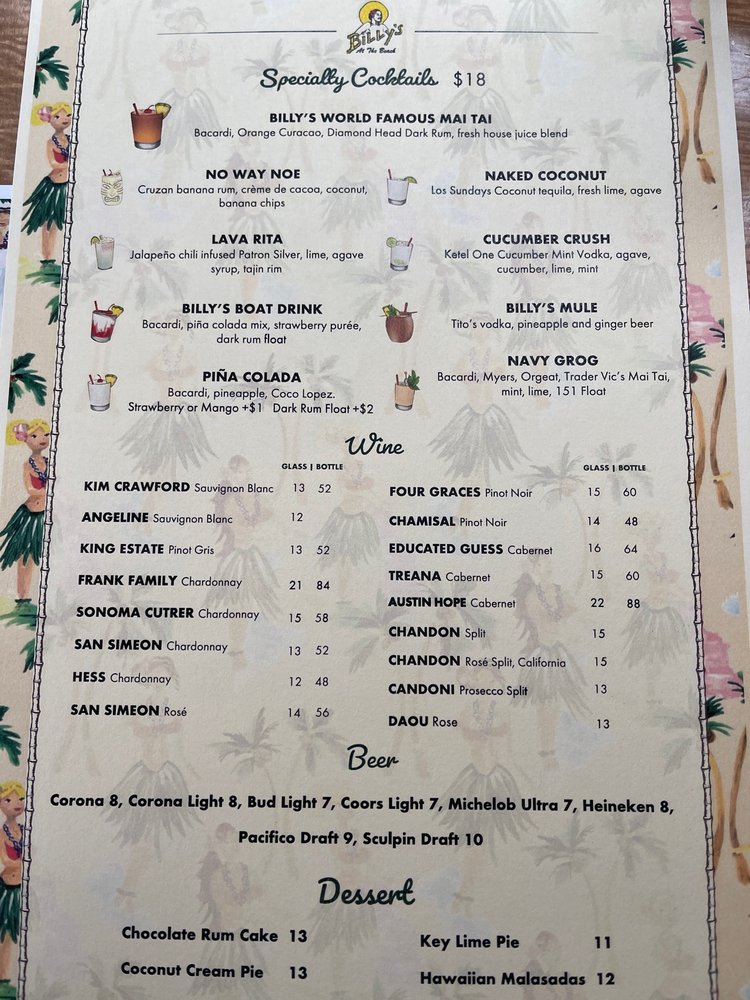 As you explore the menu, expect highlights like grilled fish tacos, succulent shrimp cocktails, and seasonal seafood specials that showcase the best local ingredients. Billy's also features a full bar, perfect for sipping cocktails during their lively happy hour on weekends.